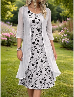 Dames Jurk Set A lijn jurk Elegant Vakantie Bloemig Grafisch Meerlaags Afdrukken Halflange jurk Halve mouw Strakke ronde hals Dagelijks blauw Wijn Groen Zomer Lente Ruim Passend