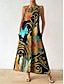 Dames Maxi-jurk Zonnejurk A lijn jurk Vakantie Casual Boho Feestdagen Ruim Passend Bloemig Grafisch Mouwloos V-hals blauw Geel Oranje Zomer Lente