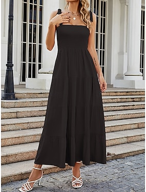 Dames Maxi-jurk A lijn jurk Vakantie Casual Feestdagen Ruim Passend Effen Mouwloos Ronde hals blauw Zwart Wit Blozend Roze Zomer Lente Herfst