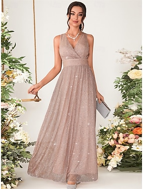 A-Lijn Bruidsmeisjesjurk V-Hals Mouwloos Elegante Vloer Lengte Chiffon met Sequins