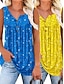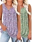 Multi-pakketten 2 stuks Dames V-hals Mouwloos Geel + blauw Tank Mouwloos shirt T-shirt Flora Casual Dagelijks Polyester Zomer
