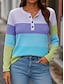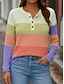 Dames Blouse Knop Afdrukken Gestreept Stijlvol Casual Lange mouw Strakke ronde hals Normale tops Dagelijks blauw Blozend Roze Oranje Groen Zomer Lente Herfst