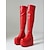 Rode fluwelen overknee laarzen voor dames met dikke hakken – modieuze winterschoenen, perfect voor kerstfeestjes, avondjes uit en speciale gelegenheden