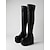 Zwarte lakleren platformlaarzen voor dames, over-de-knie laarzen met dikke hakken, statement laarzen voor het uitgaansleven en de club. &gedurfde feestlooks