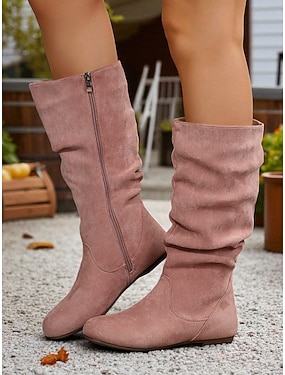 Roze dameslaarzen met rits aan de zijkant, casual slouch boots voor herfstdagen, landelijke huizen en buitenactiviteiten