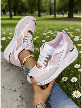 Roze platform wedge sneakers voor dames - casual sneakers met gedempte zool, veterschoenen voor dames, geschikt voor dagelijks gebruik, wandelen, reizen, winkelen en casual buitenactiviteiten.