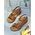 Dames Sandalen Romeinse schoenen Grote maten Dagelijks Buiten Strand Effen Kleur Zomer Veters Platte hak Open teen Vintage Klassiek Casual Imitatieleer Veters Zwart Wit Bruin