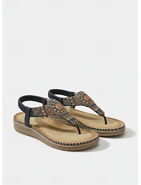 Dames Vakantie Buitenresort Zomer Strass Kralen Platte hak Ronde Teen Bohemen Vakantie Imitatieleer Leegloper Blauw Bruin
