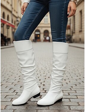 dames kniehoge slouchy gogo laarzen - retro platte hak mode schoenen voor feesten, festivals en alledaagse stijl