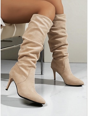 Beige suède imitatie slouch kniehoge laarzen met stilettohak voor dames - modieuze herfstschoenen voor stijlvolle dagelijkse en date-outfits