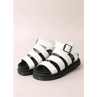 Dames Casual Dagelijks Plateau Blokhak Ronde Teen Casual Imitatieleer Gesp Amandel Zwart Wit