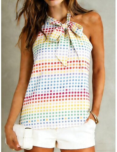Dames satijnen top Haltertop Singlet Mouwloos shirt Tie Knoop Grafisch Stip Modieus Klassiek Casual Mouwloos koude schouder Normale tops Dagelijks Uitgaan Weekend Regenboog Zomer Lente