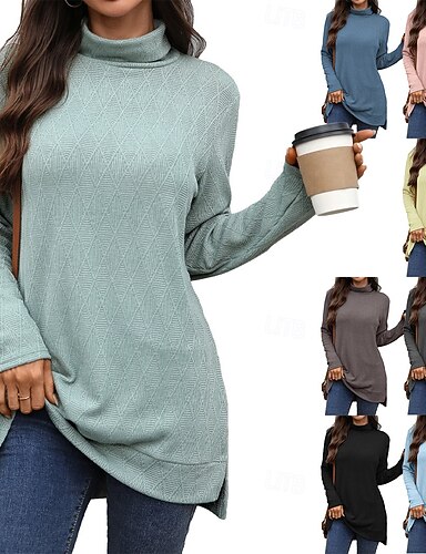 Dames Blouse Effen Kleur Stijlvol Casual Lange mouw Coltrui Normale tops Dagelijks Geel Blozend Roze Marineblauw Donkergrijs Licht Blauw Lente Herfst Winter