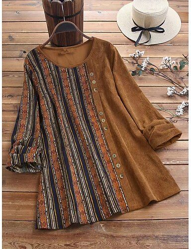 Dames Overhemd Lapwerk Knop Afdrukken Grafisch Geometrisch Vintage Dagelijks Stijlvol Lange mouw Overhemdkraag Normale tops Dagelijks Vakantie Uitgaan Khaki Alle seizoenen