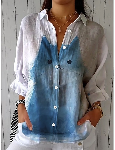 Dames Overhemd Button-down overhemd Normaal shirt Strand hemd Afdrukken Grafisch Stijlvol Klassiek Casual Lange mouw Overhemdkraag Normale tops Dagelijks Feestdagen Uitgaan blauw Zwart Rose Roze