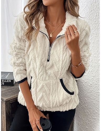 Dames Trui met capuchon Sweatshirt Effen Casual Lange mouw Capuchon Normale tops Straat Dagelijks gebruik Zwart Wit Blozend Roze Wijn Paars Herfst Winter