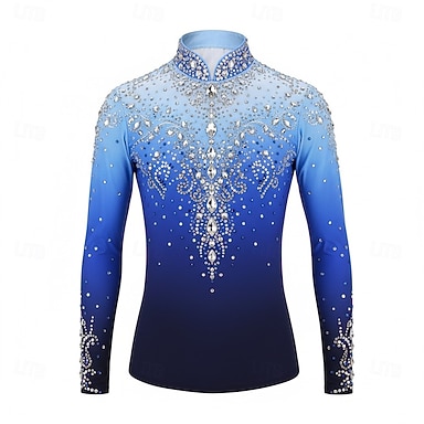 Kunstschaatstopje Voor heren Jongens Schaatsen Tops Blauw / wit Lapwerk Spandex Hoge Elasticiteit Opleiding Wedstrijd Kunstschaatskleding Klassiek Kristal / Bergkristal Lange mouw Schaatsen