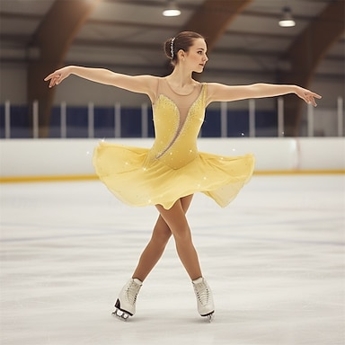 Kunstschaatsjurk Dames Voor meisjes Schaatsen Jurken Outfits Geel en geel Zwart Donker paars Open achterkant Spandex Stretch Garen Hoge Elasticiteit Opleiding Wedstrijd Kunstschaatskleding Met de