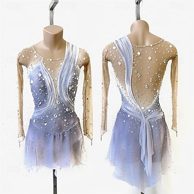 Kunstschaatsjurk Dames Voor meisjes Schaatsen Jurken Hemelsblauw Lapwerk halo-verf Spandex Netstof Hoge Elasticiteit Opleiding Wedstrijd Kunstschaatskleding Klassiek Kristal / Bergkristal Lange mouw