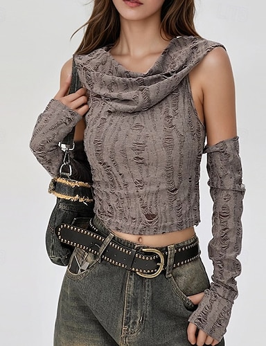 Dames Textuur Blouse T-shirt Uitknippen Effen Modieus Lange mouw Asymmetrische nek Normale tops Dagelijks Weekend Zwart Grijs Herfst