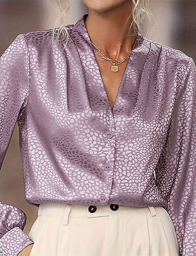 Dames Overhemd Elegant satijnen top Zomer tops Met ruches Lapwerk Afdrukken Luipaard Effen Elegant Vintage Dames Lange mouw V-hals Normale tops Dagelijks Werk Feestdagen Licht Paars Zomer Lente