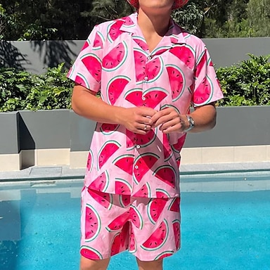 Voor heren Fuchsia 2 stuks Overhemden Sets Overhemd Korte mouw Korte broek Cubaanse kraag Vakantie Casual / Dagelijks Feest Casual Dagelijks 3D-afdrukken Zomer Roze