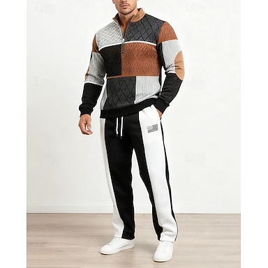 Voor heren Sweatshirt Trainingspak Kledingset Opstaand Buiten Dagelijks Sport Trekkoord Zak Halve rits Kleurenblok Amerikaanse vlag blauw Zwart Grijs Polyester Sportkleding Modieus Streetwear Lente