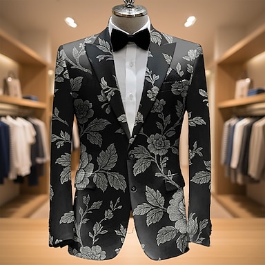 Mannen Jas Blazer Feest Casual Festival Hedendaagse Casual Dagelijks Alle Seizoenen 100% Polyester Coole Schedels Roos 3D Print Knopen Thermisch Warm Comfortabel Enkelzijdig Blazer Zwart