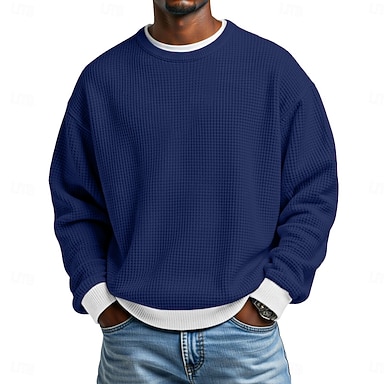 Voor heren Wafel T-shirt Trui-sweatshirt T-shirt Shirt met lange mouwen Lange mouw Strakke ronde hals Ronde Winter Lente & Herfst Effen Modieus Ontwerper Basic Mode nep tweedelig Vakantie Straat