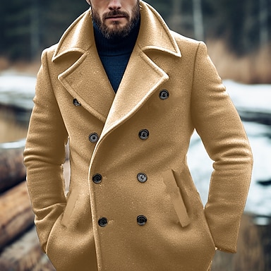 Voor heren Winterjas Peacoat Regenjas Buiten Alledaagse kleding Herfst winter Polyester Thermisch Warm Windjack bovenkleding Kleding Modieus Streetwear Effen Revers Dubbele rij knopen