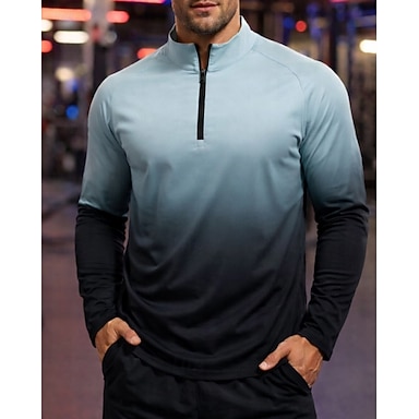 Voor heren Verloop Hardloopshirt Compressieshirt Atletisch shirt Sporttop Lente Herfst Kwart rits Lange mouw Sneldrogend Vochtregelerend Ademend Sportschooltraining Hardlopen Wandelen Joggen Zwart
