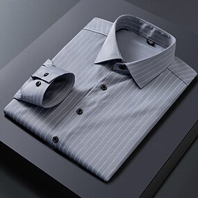 Voor heren Overhemd Gestreept shirt Strijkvrij overhemd Bruiloft Buiten Zwart Wit Grijs Lange mouw Kraag Zomer Lente Kleding