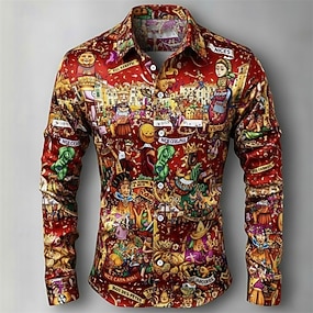 Kerstmis Voor heren Sprankelende glitter Overgangskleur Kerstverlichting Overhemd Satijnen overhemd Lange mouw Mode-casual Feest Feestdagen Zomer Lente Herfst Strijkijzer 3D-afdrukken Overhemden met