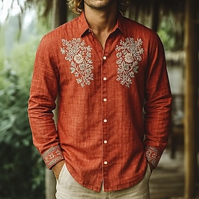 Voor heren Bloemenprint Bloemen Overhemd Westers overhemd Cowboyshirt Lange mouw Vintage Retro Buiten Vakantie Lente Herfst Strijkijzer 3D-afdrukken Linnenachtig shirt Rood Oranje Groen Grijs