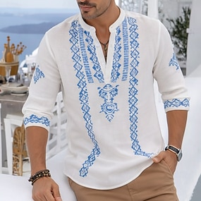 Voor heren Geometrisch patroon Bloemenprint Etnisch Overhemd Overhemd met knopen Henley-shirt Lange mouw Vintage Retro Casual Vakantie Bruiloft Zomer Lente Mandarijn Kraag Opstaande boord