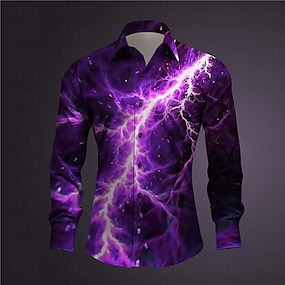 Voor heren Bliksem Overhemd Overhemd met knopen Lange mouw Abstract Subcultureel Alledaagse kleding Uitgaan Lente Strijkijzer Afdrukken Button-omlaag blauw Paars Oranje Groen Grijs