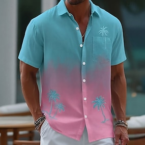 Voor heren Kokosnootboom Overgangskleur Tropische planten Hawaiiaans overhemd Overhemd met knopen Aloha-shirt Korte mouw Hawaii Toevlucht Vakantie Feestdagen Strand Kleding Zomer Lente Strijkijzer