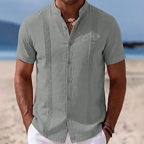 Voor heren Overhemd Linnen overhemd Popover-shirt Zomer overhemd Normaal shirt Strand hemd Effen Vakantie Casual Zwart Wit Khaki Donker Grijs Lange mouw Band Kraag Lente Herfst Kleding Zak