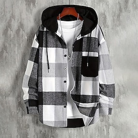 Voor heren Overhemd Flanellen hemd Ruitjes Buiten Straat Zwart Blozend Roze Marineblauw Bruin Lange mouw Capuchon Winter Lente & Herfst Kleding