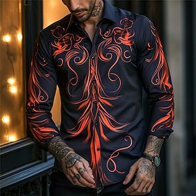 Voor heren Totem Overhemd met knopen Bedrukte overhemden Lange mouw Subcultureel Vakantie Feest Straat Lente zomer Strijkijzer Afdrukken Button-omlaag Rood Paars Oranje