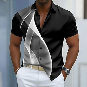 Voor heren Geometrisch Abstracte vloeibare kunst Overhemd Normaal shirt Overhemd met knopen Korte mouw Mode-casual Streetwear Vakantie Feestdagen Zomer Lente Strijkijzer 3D-afdrukken shirts met kraag