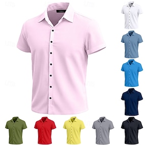 Voor heren Overhemd Zomer overhemd Normaal shirt Strand hemd Overhemd met knopen Licht Roze Zwart Wit Rood Koningsblauw Korte mouw Effen Revers Vakantie Hawaii Kleding Polyester Modieus Casual
