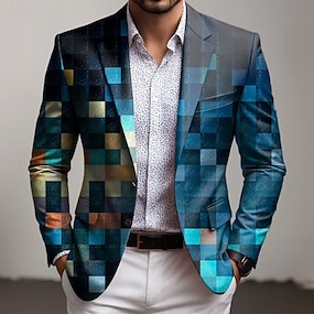Voor heren Geometrisch Blazerjack Jas Comfortabel Ademend Artistiek Casual Casual Dagelijks Feestavondkleding 3D-afdrukken Knop Meerdere zakken Lente Herfst winter Inkeping Lange mouw blauw Rood Paars