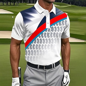 Voor heren Sport Poloshirts Casual Sport Revers Korte mouw Meetkundig Lijn Knop Zomer Roodborstje Rood Groen Grijs Sport Poloshirts