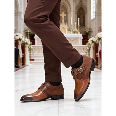 Herenschoenen van bruin suèdeleer met monniksband - echte eerste laag rundleer, klassieke zakelijke schoenen voor kantoor en formele gelegenheden