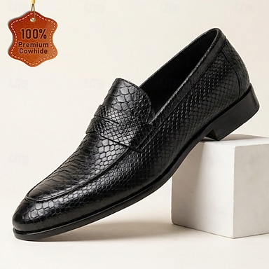 Witte imitatieleren loafers voor heren met zwarte krokodillentextuur – elegante en stijlvolle instappers voor semi-formele evenementen, bruiloften en informele bijeenkomsten
