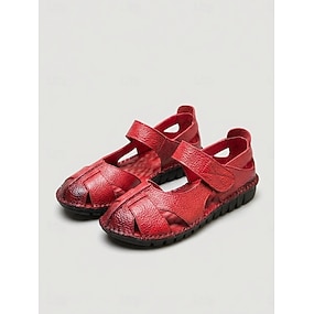 Comfortabele rode leren ballerina's voor dames – ademende retro schoenen met kleurblokken en gesloten neus, ideaal voor zomerse reizen en casual gelegenheden.