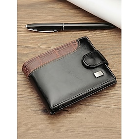Herenportemonnee van imitatieleer met krokodillenprint, meerdere kaartsleuven, zwartbruine portemonnee met dubbele vouw, geschikt voor dagelijks gebruik, zakelijk woon-werkverkeer en reizen.