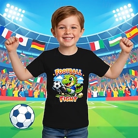 100% katoen Kinderen Jongens Zwart Grafisch Dinosaurus Voetbal Voetbal T-shirts T-shirt Blouse Strakke ronde hals Korte mouw Buiten Dagelijks gebruik Modieus Streetwear Ontwerper Opdrukken Zomer
