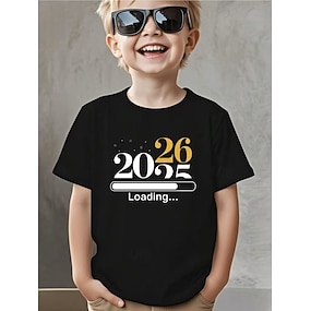 katoenen kinderkleding jongens 2026 nieuwjaarsfeest zwart nummer t-shirt blouse ronde hals korte mouw outdoor dagelijks gebruik mode streetwear designer print zomer